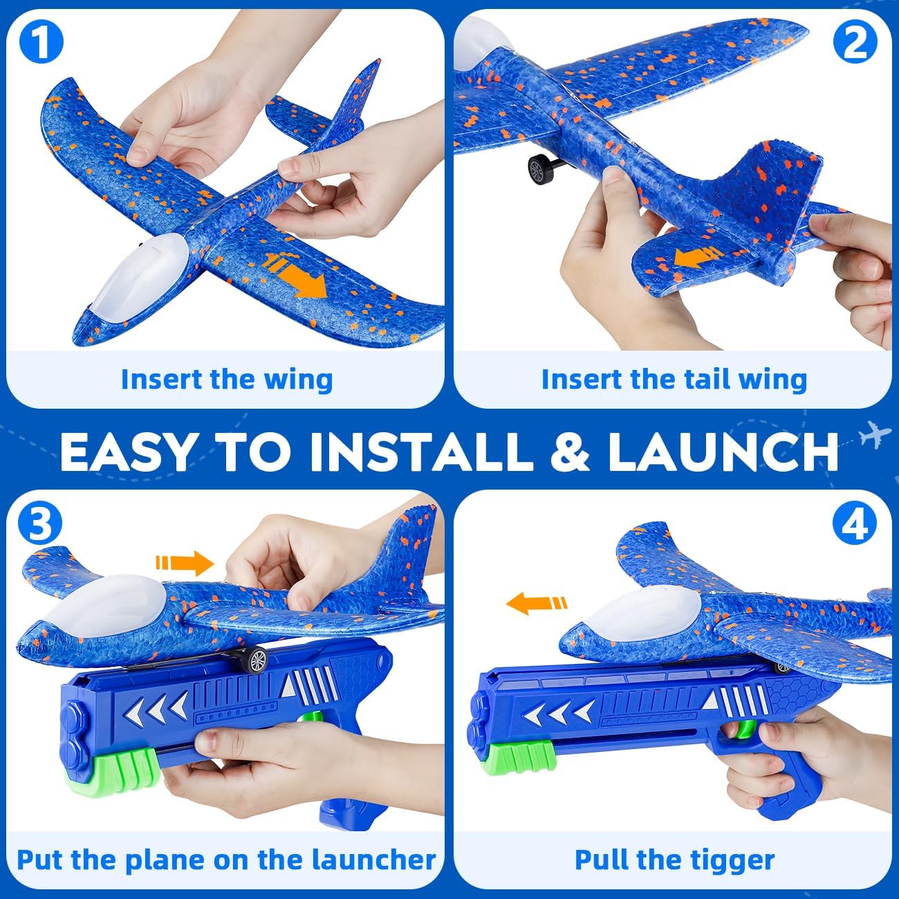 2 in 1 Airplane Toys: This airplane launcher toy includes 1 launcher and 3 colorful foam airplanes. Each plane features LED lights for enhanced visual enjoyment, making it a fantastic airplane shooter toy that kids will love. Suitable as garden games for 4 5 6 7 8 year olds boys toys.